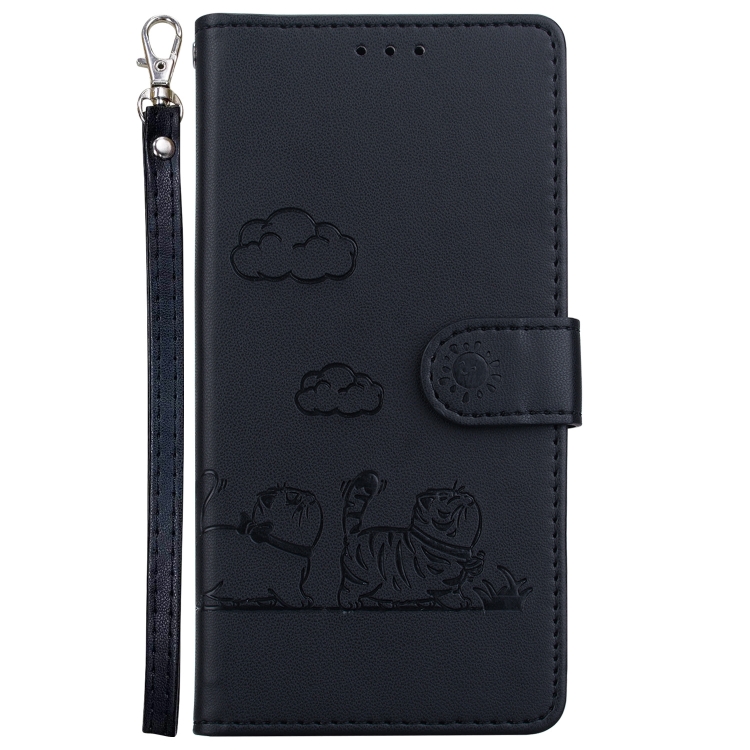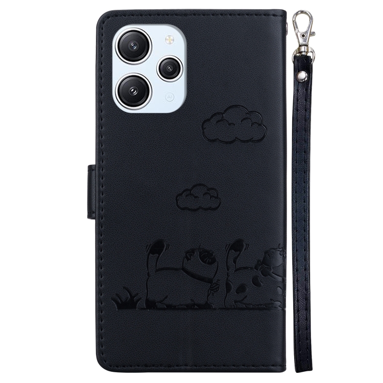 Funda de Cuero Rfid con Diseño de Gatos para Redmi 12 4G/5G (Negra)