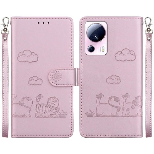 Funda de Cuero Rfid con Diseño de Gatos para Xiaomi 13 Lite/Civi 2 (Oro Rosa)