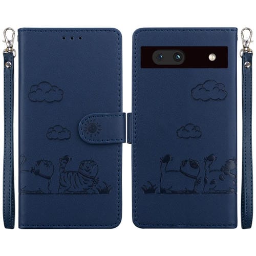 Funda de Cuero Rfid para Google Pixel 7A con Diseño de Gatos (Azul)