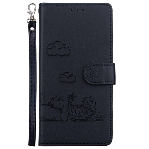 Funda de Cuero Rfid con Diseño de Gatos para Xiaomi Poco M6 Pro 4G (Negra)