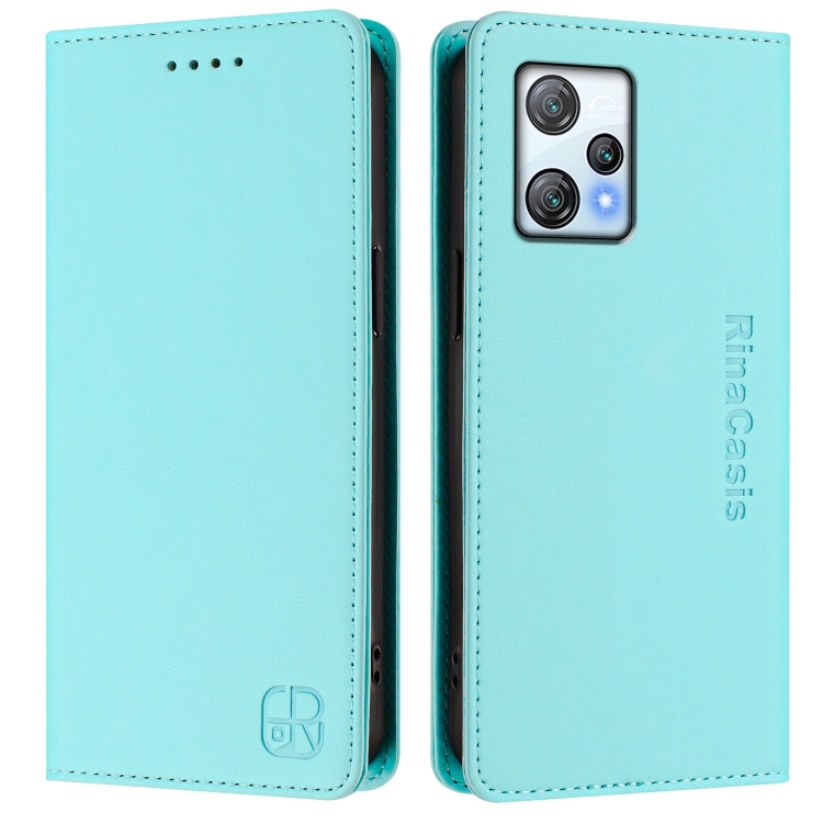 Funda de Cuero Rfid con Doble Pliegue y Succión Magnética para BlackView A53 Rc01 (Verde Menta)