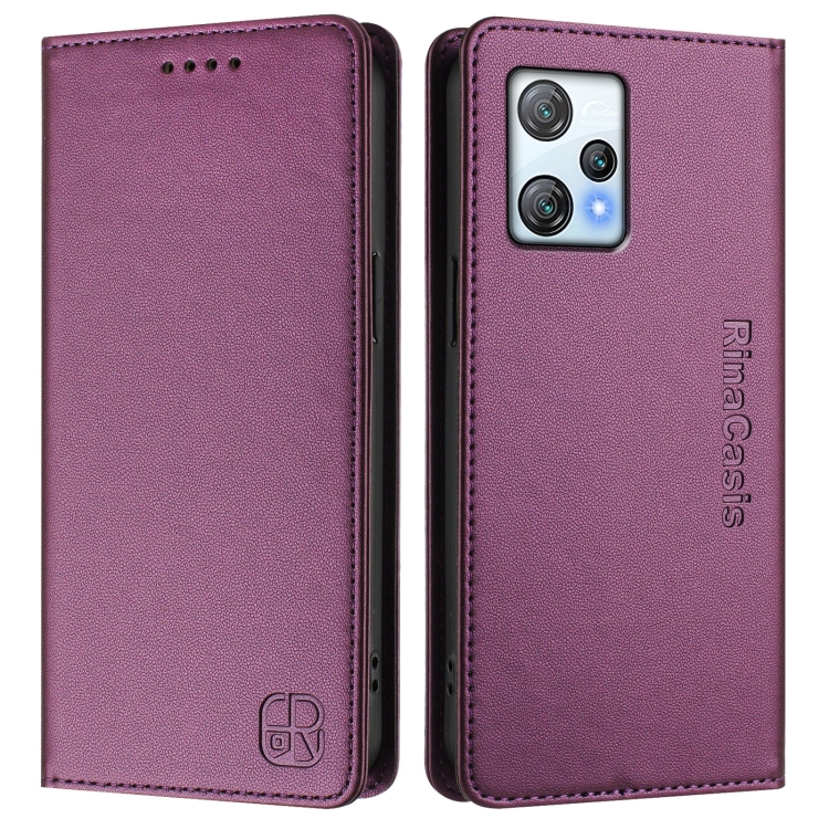 Funda de Cuero Rfid con Doble Pliegue y Succión Magnética para BlackView A53 Rc01 (Violeta)