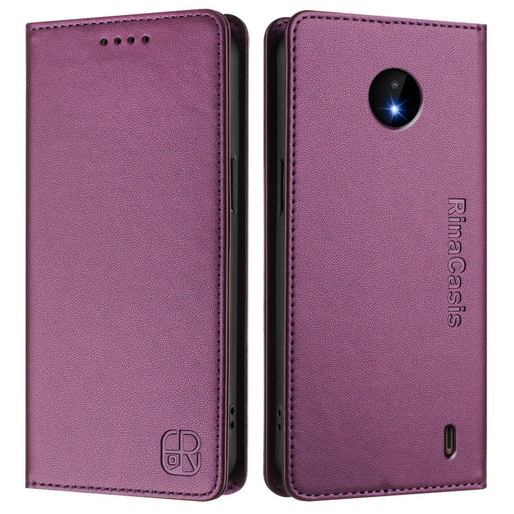 Funda de Cuero Rfid con Doble Pliegue y Succión Magnética para Nokia C10/C20 Rc01 (Violeta)
