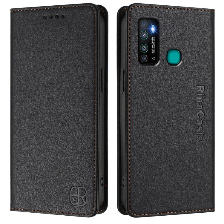 Funda de Cuero Rfid para Tecno Camon 15/15 Air Rc01 con Doble Pliegue y Succión Magnética (Negra)