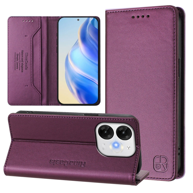 Funda de Cuero Rfid para Teléfono Itel A80 4G Rc01 con Doble Pliegue y Succión Magnética (Violeta)