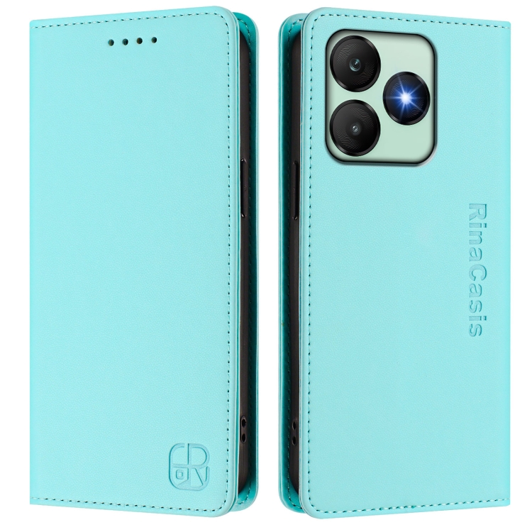 Funda de Cuero Rfid Wiko T20 Rc01 con Doble Pliegue y Succión Magnética (Verde Menta)
