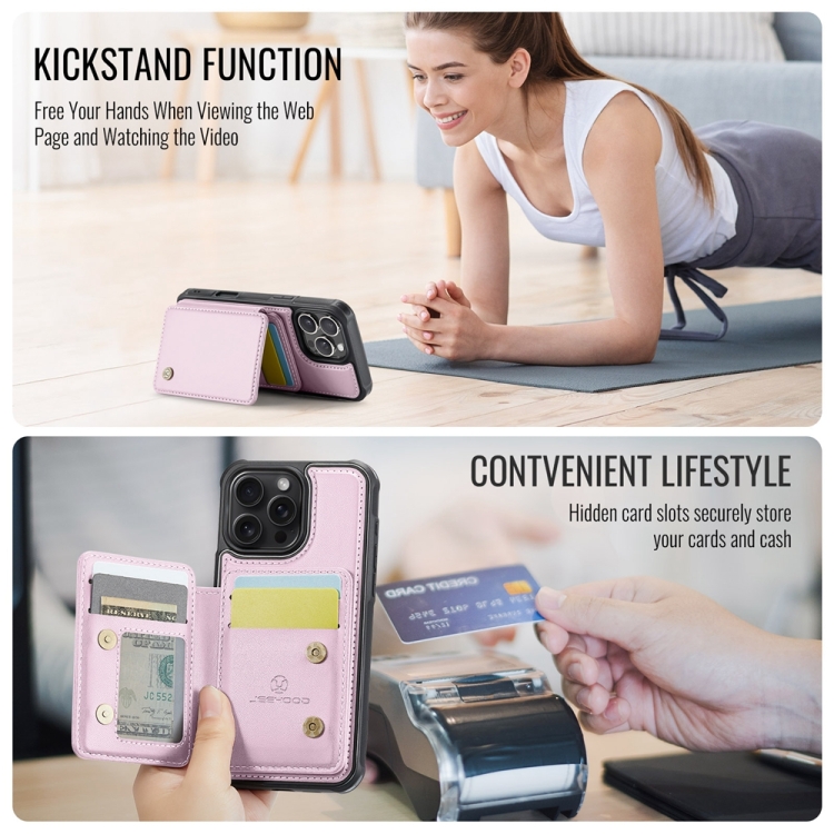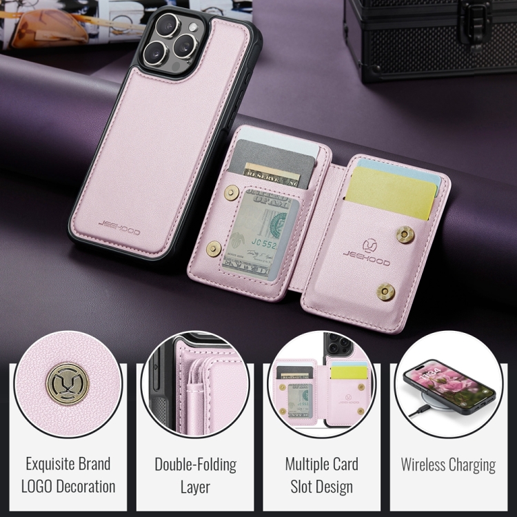 Funda de Cuero Rfid Jeehood J05 para iPhone 16 Pro Max con Estilo Magnético (Rosa)