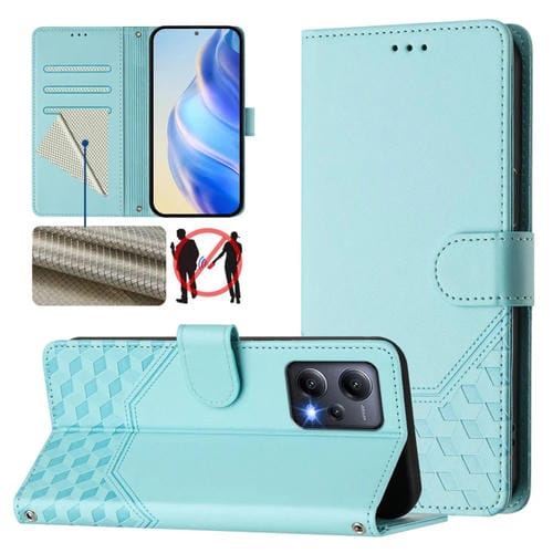 Funda de Cuero Rfid con Relieve de Panal Global para Redmi Note 12 5G (Verde Menta)