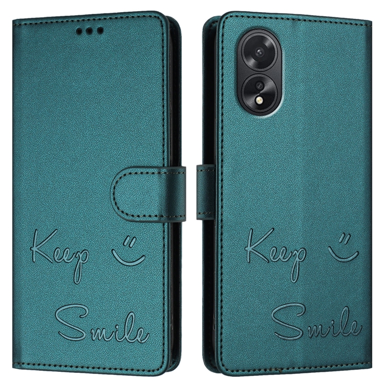 Funda de Cuero Rfid con Relieve de Sonrisa Global para Oppo A38 4G/A18 4G (Verde Pavo Real)