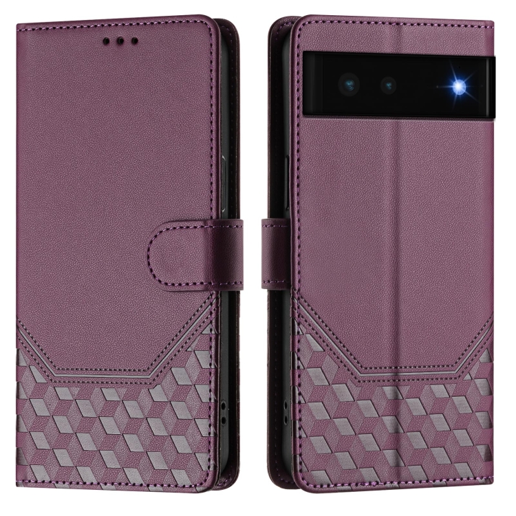 Funda de Cuero Rfid con Relieve en Panal para Google Pixel 6 (Violeta)