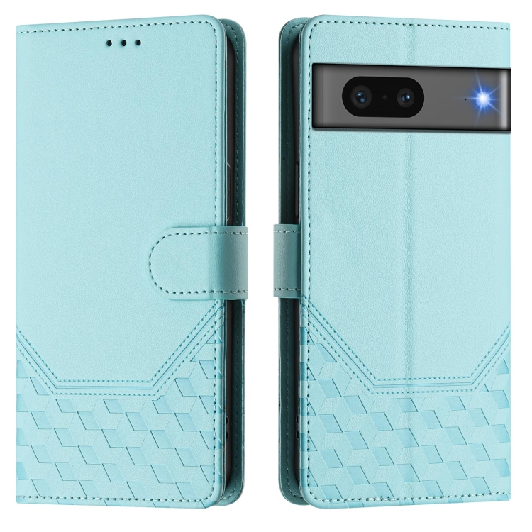 Funda de Cuero Rfid con Relieve en Panal para Google Pixel 7 (Verde Menta)
