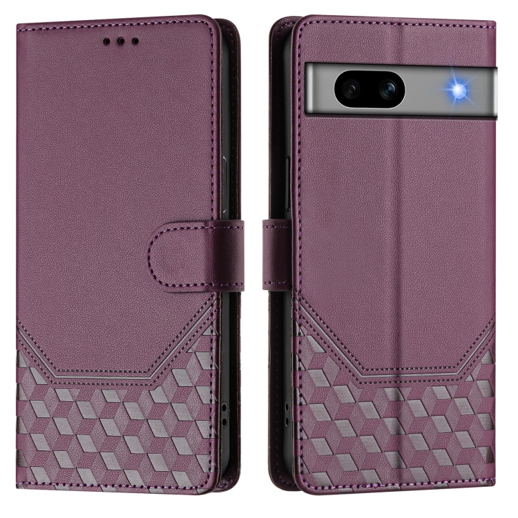 Funda de Cuero Rfid con Relieve en Panal para Google Pixel 7A (Violeta)