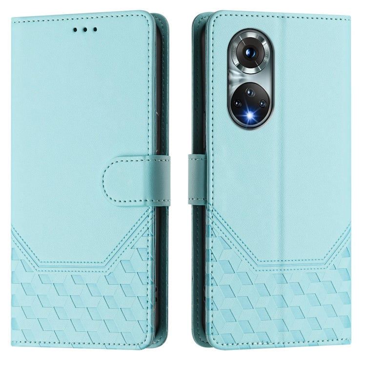 Funda de Cuero Rfid con Relieve en Panal para Huawei Nova 9 (Verde Menta)