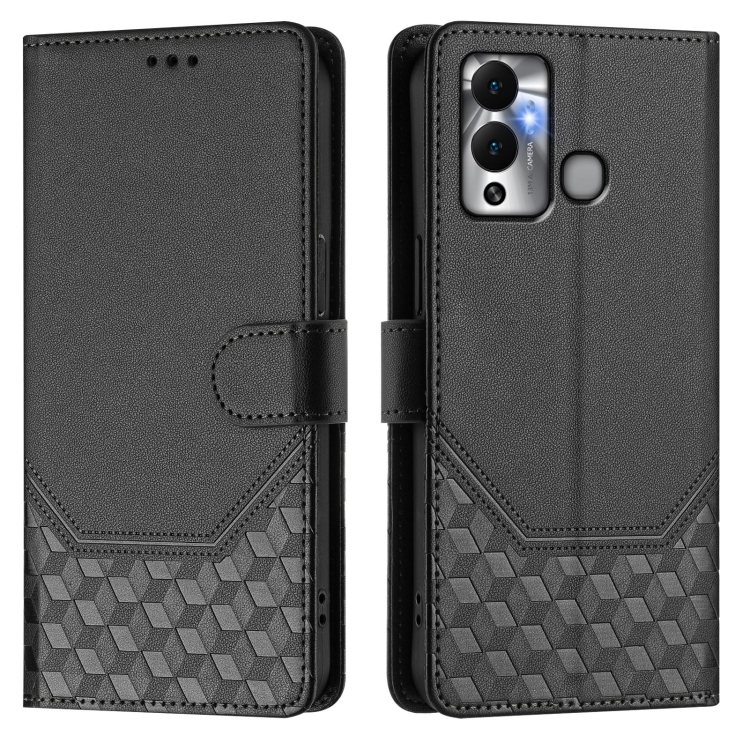 Funda de Cuero Rfid con Relieve en Panal para Infinix Hot 12 Play (Negra)