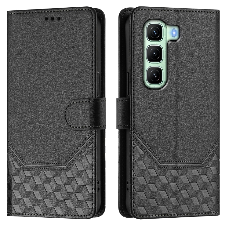 Funda de Cuero Rfid con Relieve en Panal para Infinix Hot 50 5G (Negra)