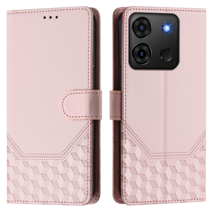 Funda de Cuero Rfid con Relieve en Panal para Infinix Smart 7 Plus/7 HD/7 India (Rosa)