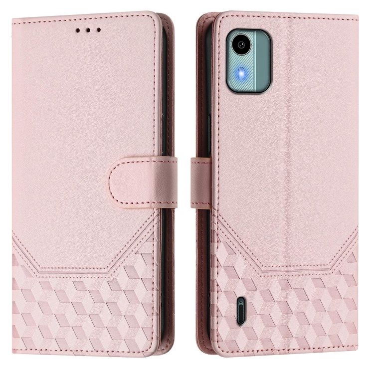 Funda de Cuero Rfid con Relieve en Panal para Nokia C12 (Rosa)
