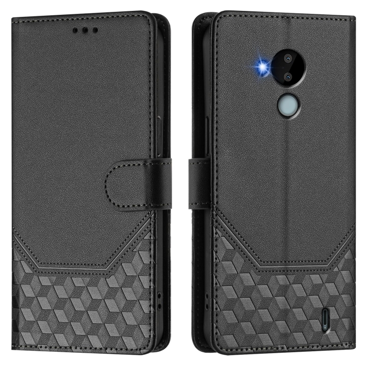 Funda de Cuero Rfid con Relieve en Panal para Nokia C30 (Negra)