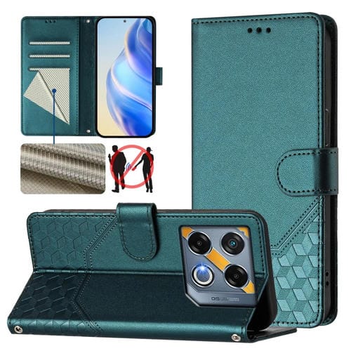 Funda de Cuero Rfid con Relieve en Panal para Teléfono Infinix GT 20 Pro 5G (Verde Pavo Real)