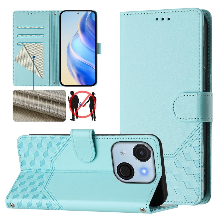 Funda de Cuero Rfid con Relieve en Panal para Teléfono Itel A50C (Verde Menta)