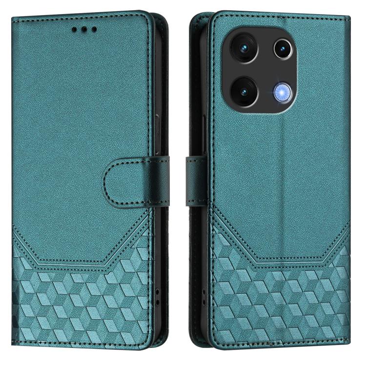 Funda de Cuero Rfid con Relieve en Panal para Teléfono Umidigi Note 100 (Verde Pavo Real)
