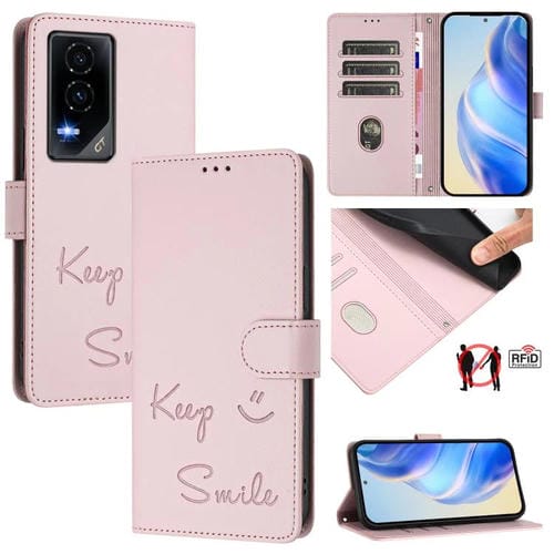 Funda de Cuero Rfid con Relieve Smile para Teléfono For Honor Gt (Rosa)