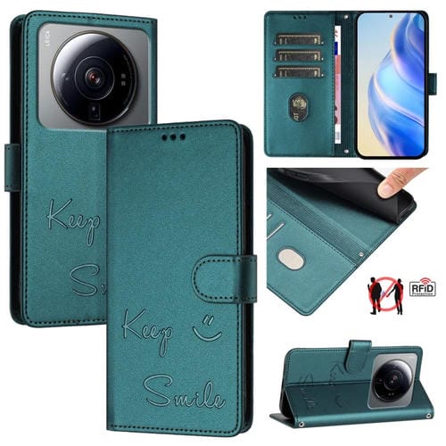 Funda de Cuero Rfid con Relieve Smile para Teléfono Xiaomi 12S Ultra (Verde Pavo Real)