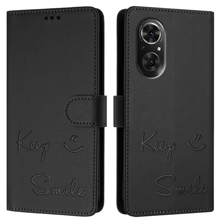 Funda de Cuero Rfid con Relieve Sonriente para Huawei Nova 9 Se (Negra)