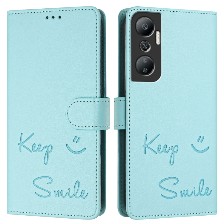 Funda de Cuero Rfid con Relieve Sonriente para Infinix Hot 20 4G X6826 (Verde Menta)