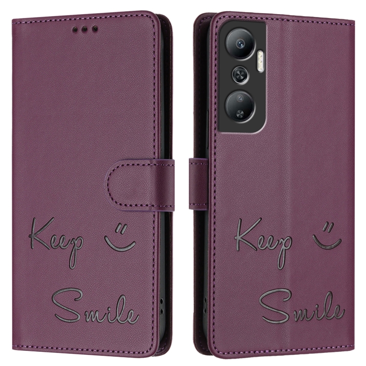 Funda de Cuero Rfid con Relieve Sonriente para Infinix Hot 20 4G X6826 (Violeta)