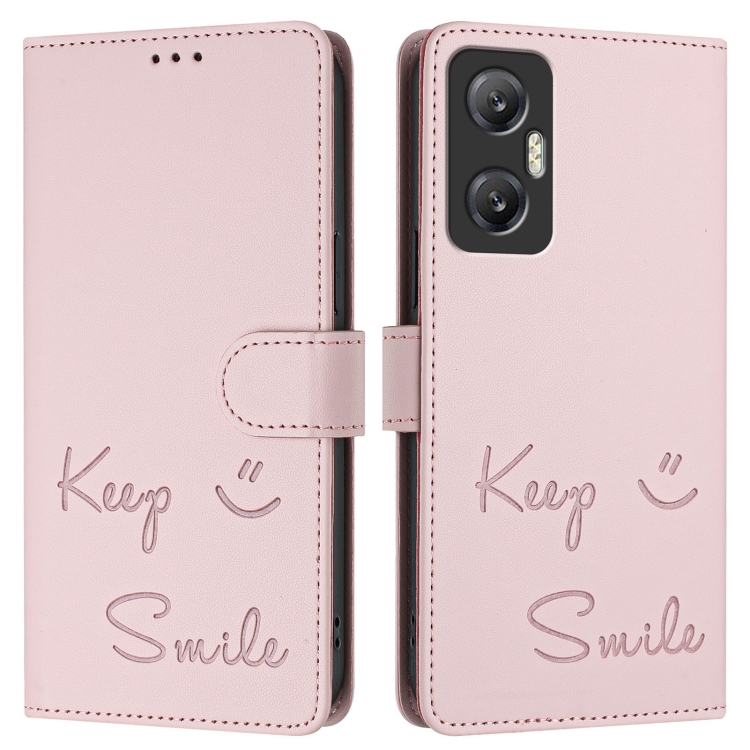 Funda de Cuero Rfid con Relieve Sonriente para Infinix Hot 20 5G X666/X66B (Rosa)