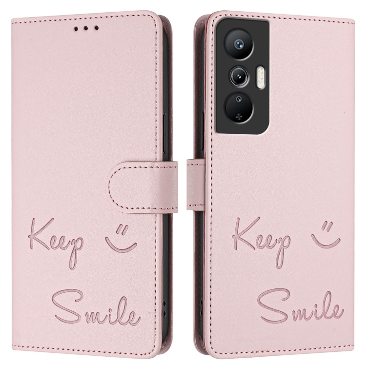 Funda Cuero Rfid con Relieve Sonriente para Infinix Hot 20S y Hot 20 Pro (Rosa)
