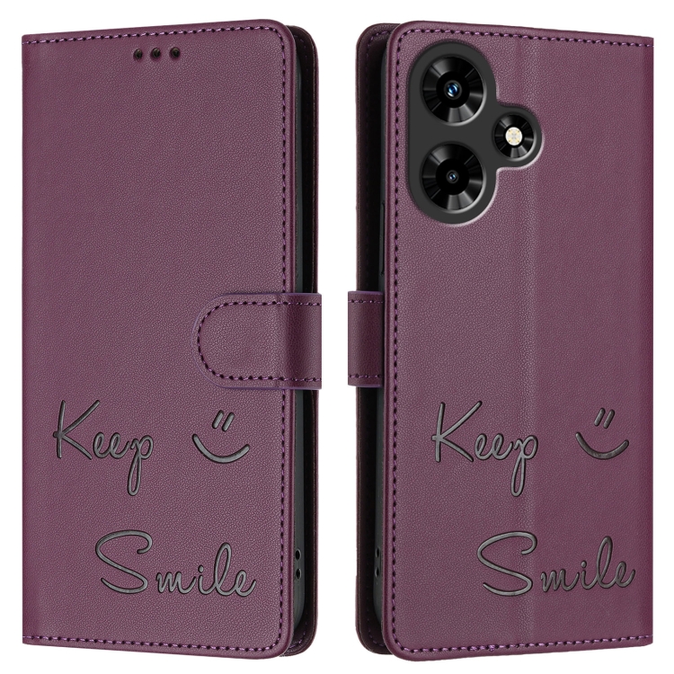 Funda de Cuero Rfid con Relieve Sonriente para Infinix Hot 30 4G (Violeta)