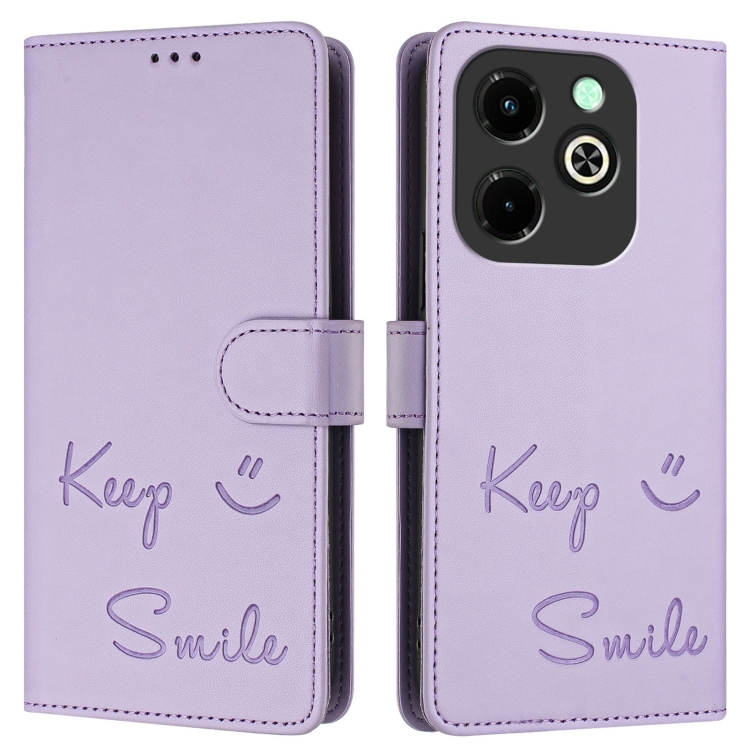 Funda de Cuero Rfid con Relieve Sonriente para Infinix Hot 40I (Morado Claro)