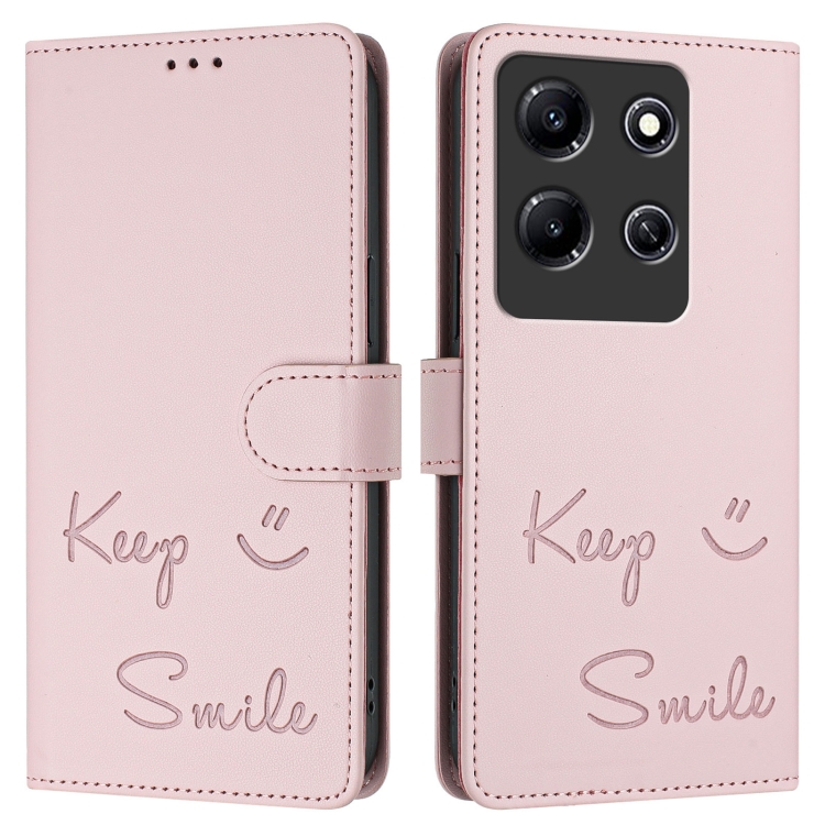 Funda de Cuero Rfid con Relieve Sonriente para Infinix Note 30I (Rosa)