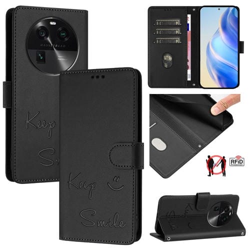 Funda de Cuero Rfid con Relieve Sonriente para Oppo Find X6 Pro (Negra)