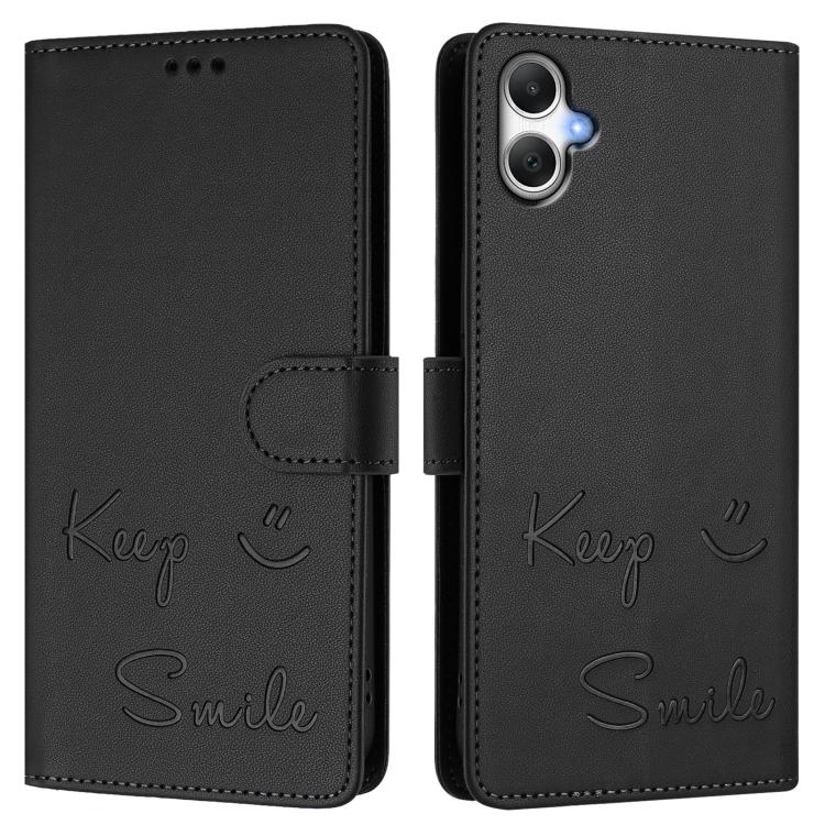 Funda de Cuero Rfid para Samsung Galaxy A06 5G/4G con Relieve Sonriente (Negra)
