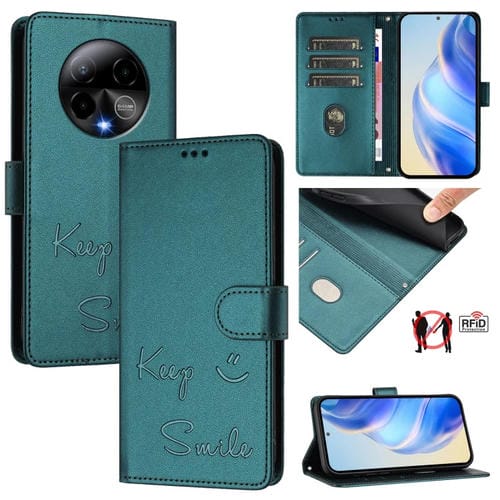 Funda de Cuero RFID con Relieve Sonriente para Blu Bold K50 (Verde Pavo Real)