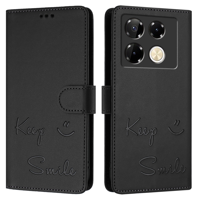 Funda de Cuero Rfid con Relieve Sonriente para Teléfono Infinix Note 40 Pro 4G X6850 (Negra)