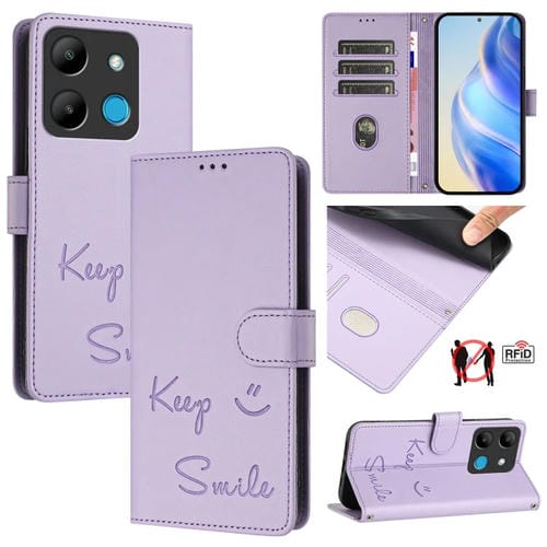 Funda de Cuero Rfid con Relieve Sonriente para Teléfono Infinix Smart 7 X6515 (Morado Claro)