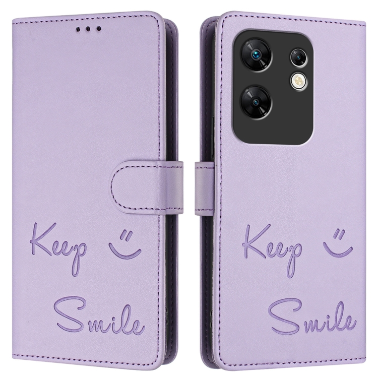 Funda de Cuero Rfid con Relieve Sonriente para Teléfono Infinix Zero 30 4G (Morado Claro)