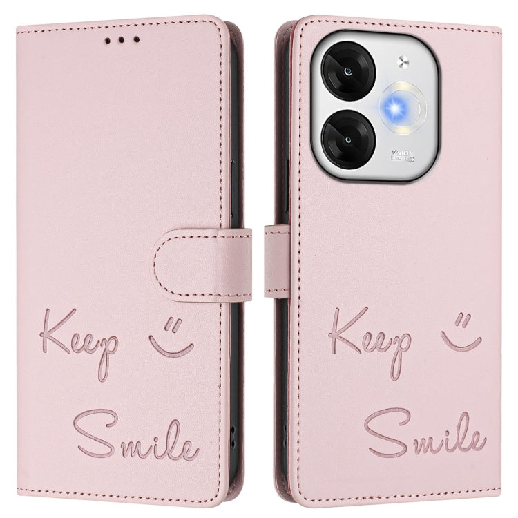 Funda de Cuero Rfid con Relieve Sonriente para Teléfono Itel A80 4G (Rosa)
