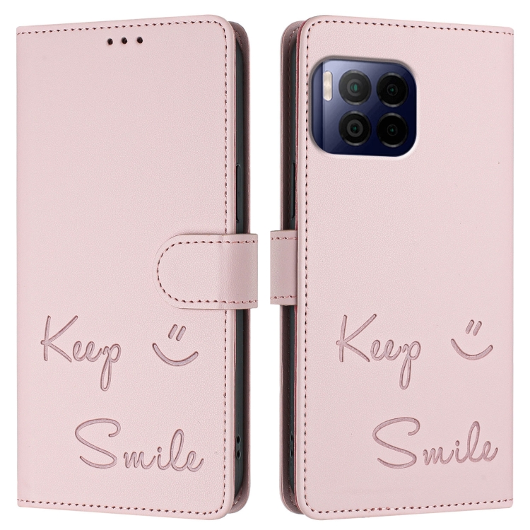 Funda de Cuero Rfid con Relieve Sonriente para Teléfono T-Mobile Revvl 7 Pro 5G (Rosa)