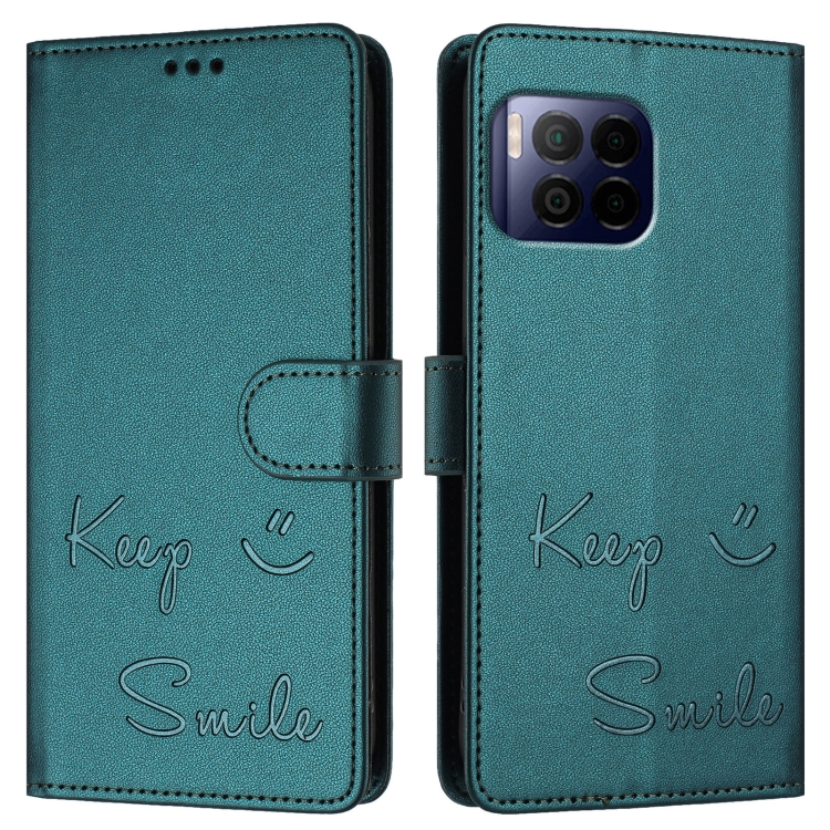 Funda de Cuero Rfid con Relieve Sonriente para Teléfono T-Mobile Revvl 7 Pro 5G (Verde Pavo Real)