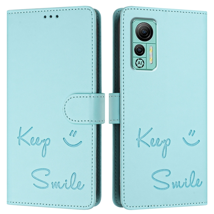 Funda de Cuero Rfid con Relieve Sonriente para Teléfono Ulefone Note 14 (Verde Menta)