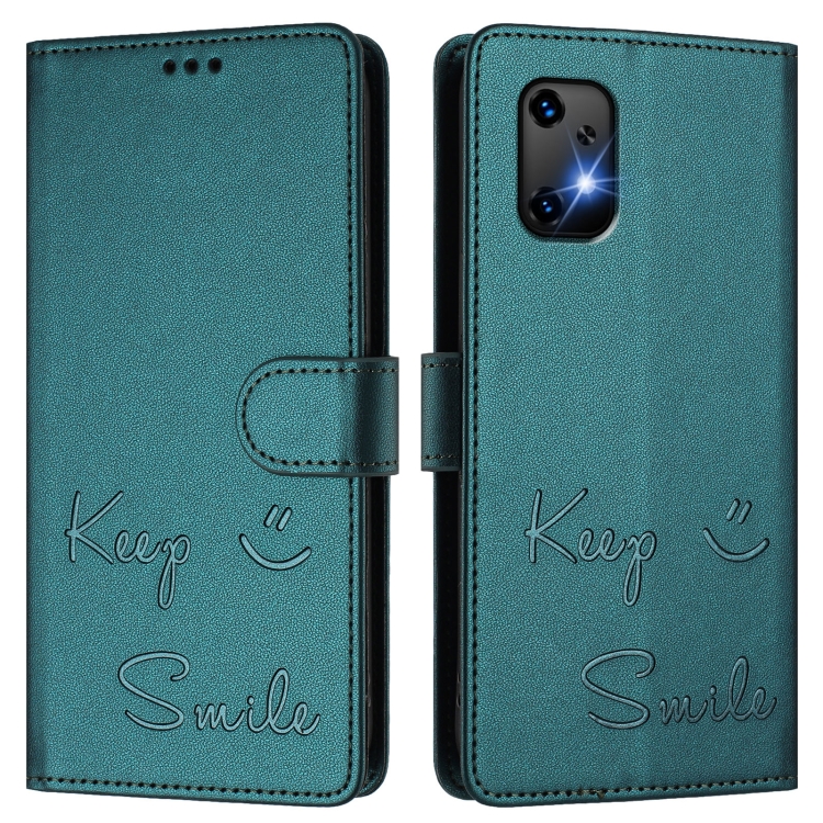 Funda de Cuero Rfid con Relieve Sonriente para Umidigi Bison X20 (Verde Pavo Real)