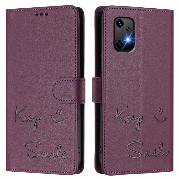 Funda de Cuero Rfid con Relieve Sonriente para Umidigi Bison X20 (Violeta)