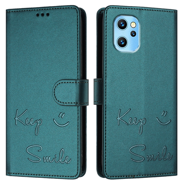 Funda de Cuero Rfid con Relieve Sonriente para Teléfono Umidigi Power 7 Max (Verde Pavo Real)