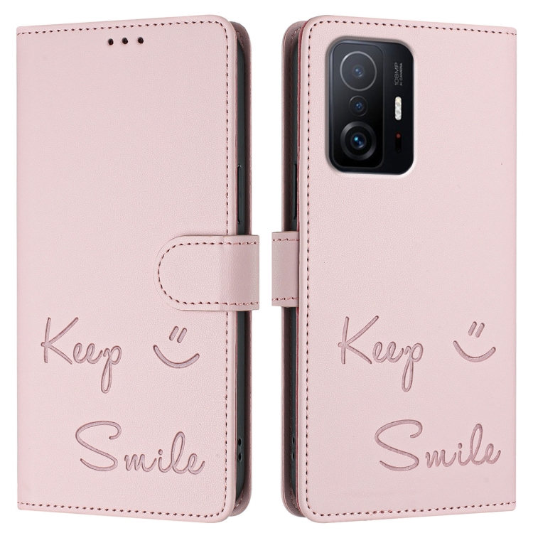 Funda de Cuero Rfid con Relieve Sonriente para Xiaomi 11T/11T Pro (Rosa)