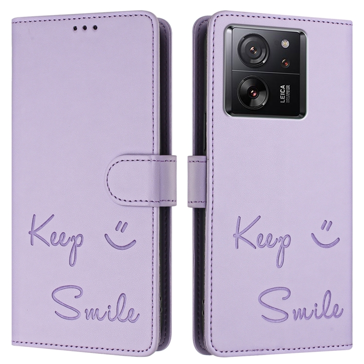 Funda de Cuero Rfid con Relieve Sonriente para Xiaomi 13T/13T Pro (Morado Claro)